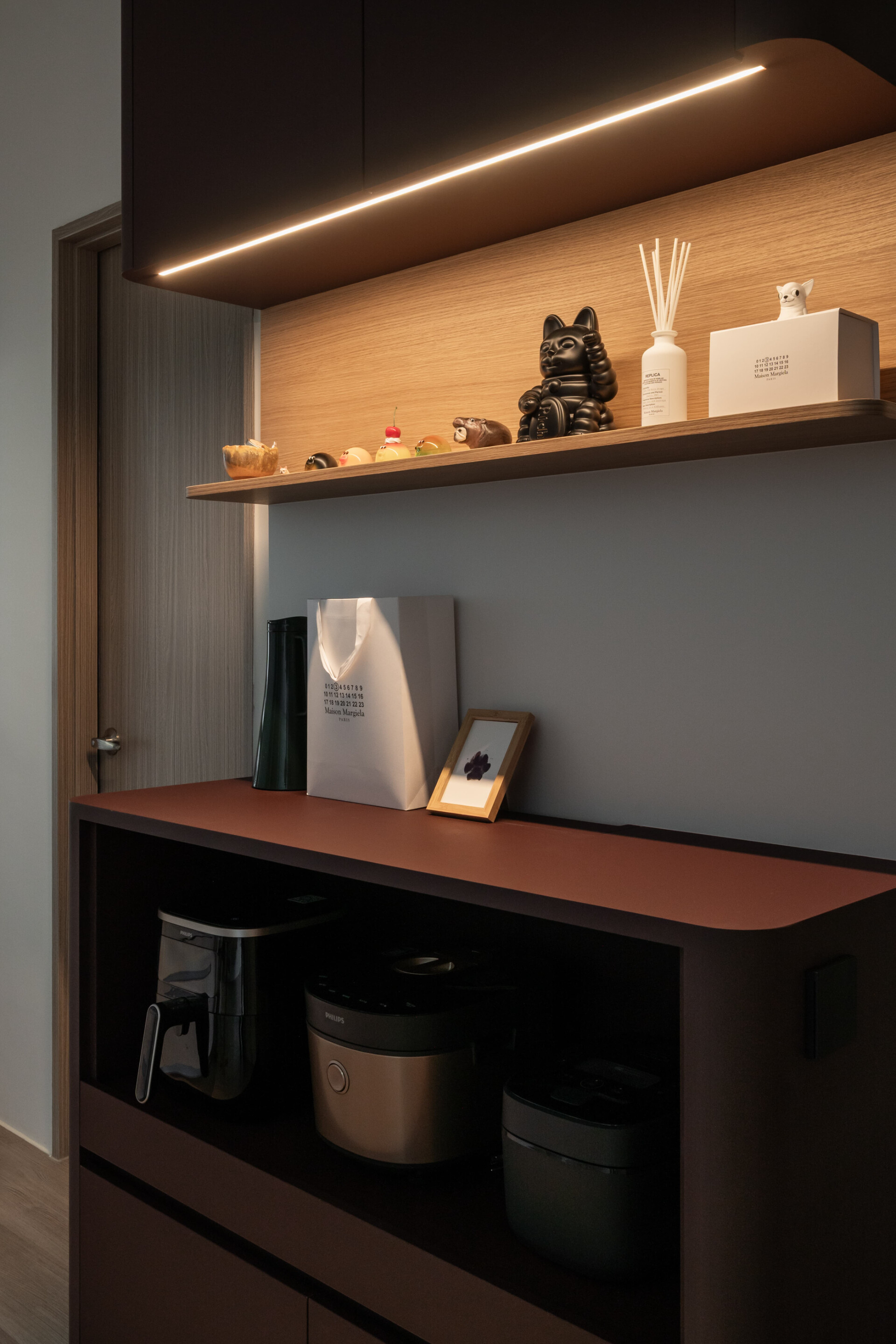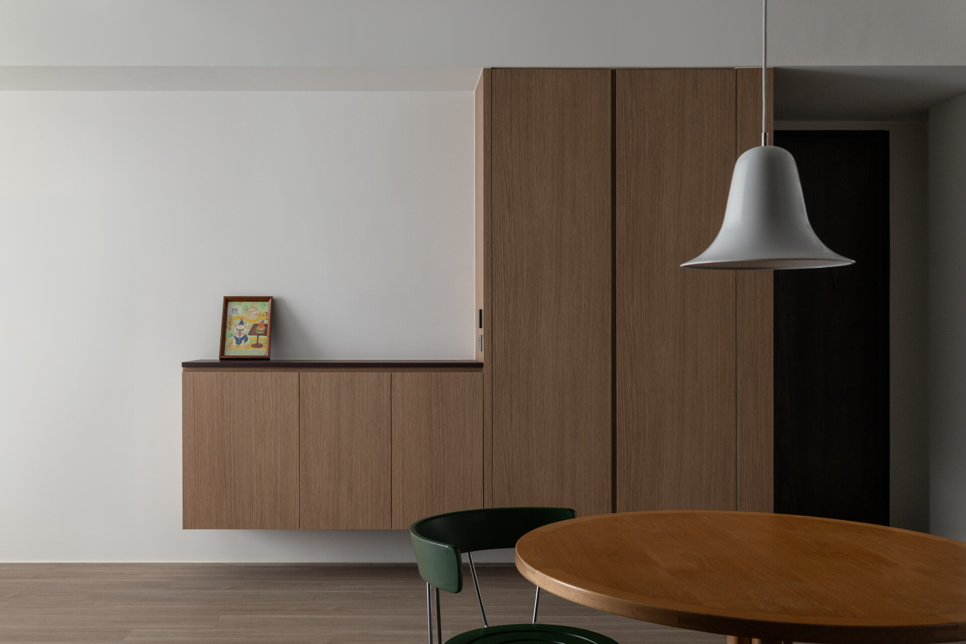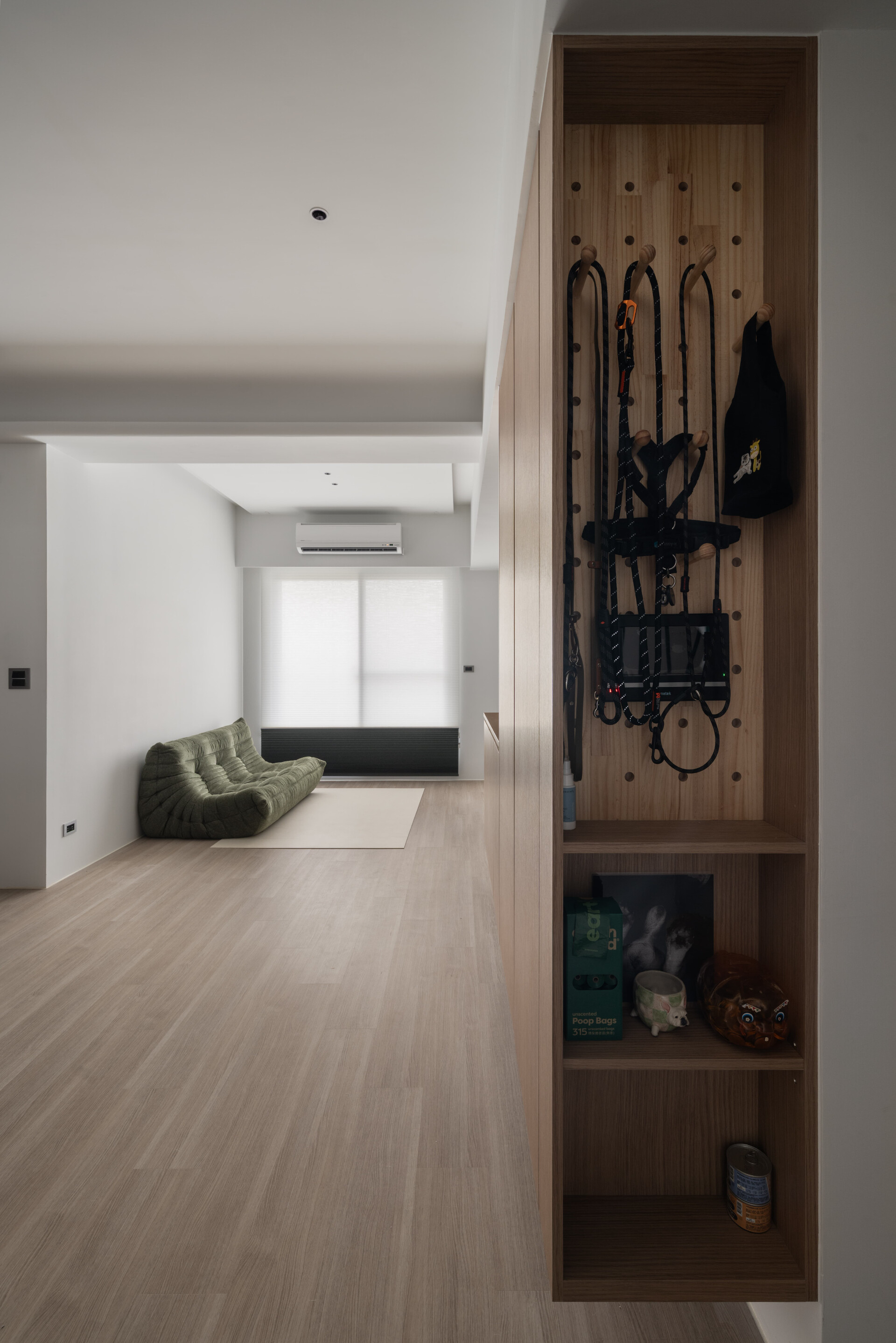在這個專案,我們以「生活者的品味」為設計核心,透過現代輕裝修,為熱愛設計師家具的屋主留白。捨棄過度裝飾,讓家具成為空間的主角。考量到屋主養有一隻愛犬,玄關處巧妙配置洞洞板牆,讓愛犬的外出用品隨手可得,也維持了入門空間的俐落質感。